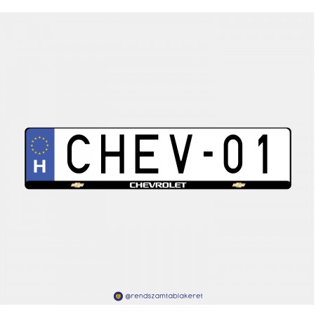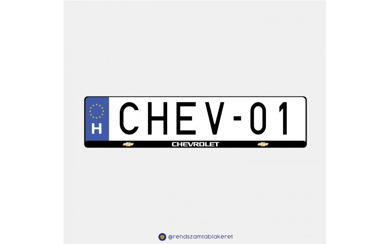 Chevrolet rendszámtáblakeret. Fekete alapon aranyszínű logó és fehér felirat.